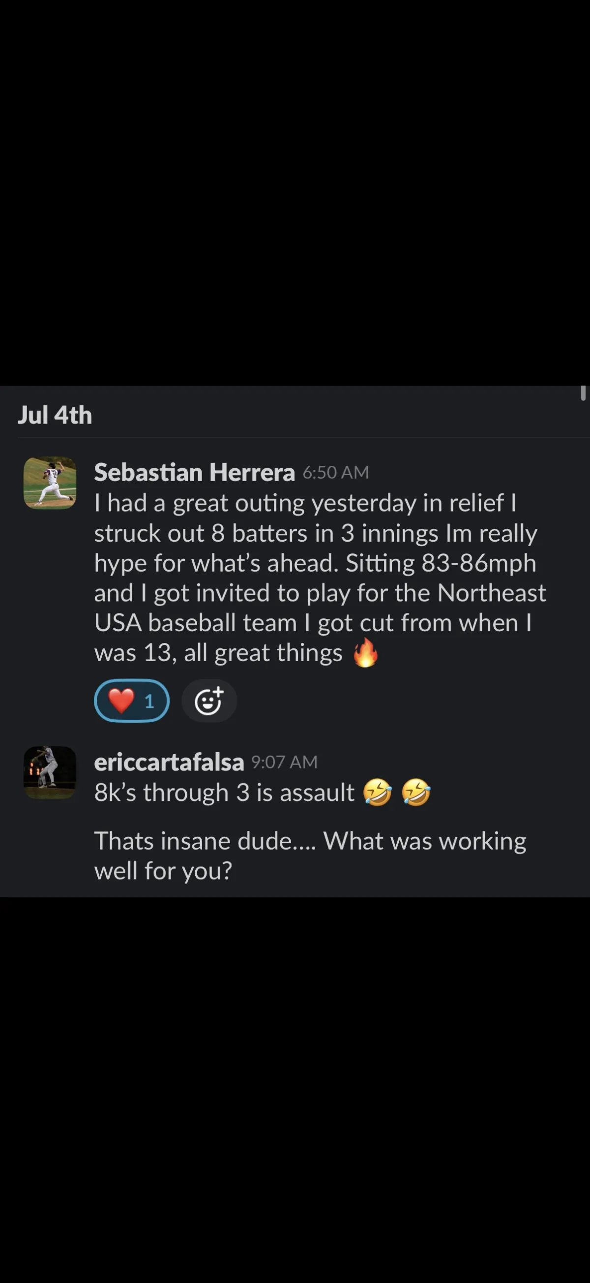 "Before working with Eric, I was a low-80s JV pitcher with zero college looks. Five months later, I was sitting 88-90 MPH and committed to play college baseball. The program completely changed my career."